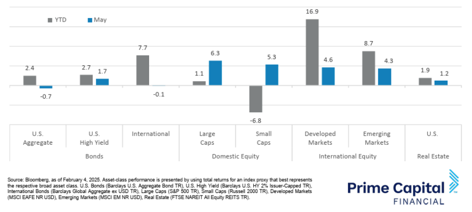Quick Takes Stocks Higher. U.S. equity indices were higher in May as temporary breaks on tariffs and relatively strong earnings boosted sentiment. The S&P 500 jumped 6.1% and the Nasdaq 100...